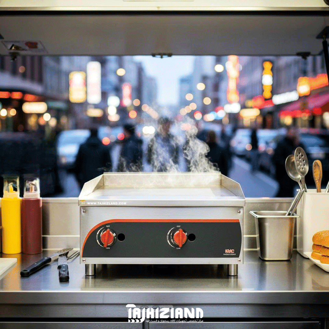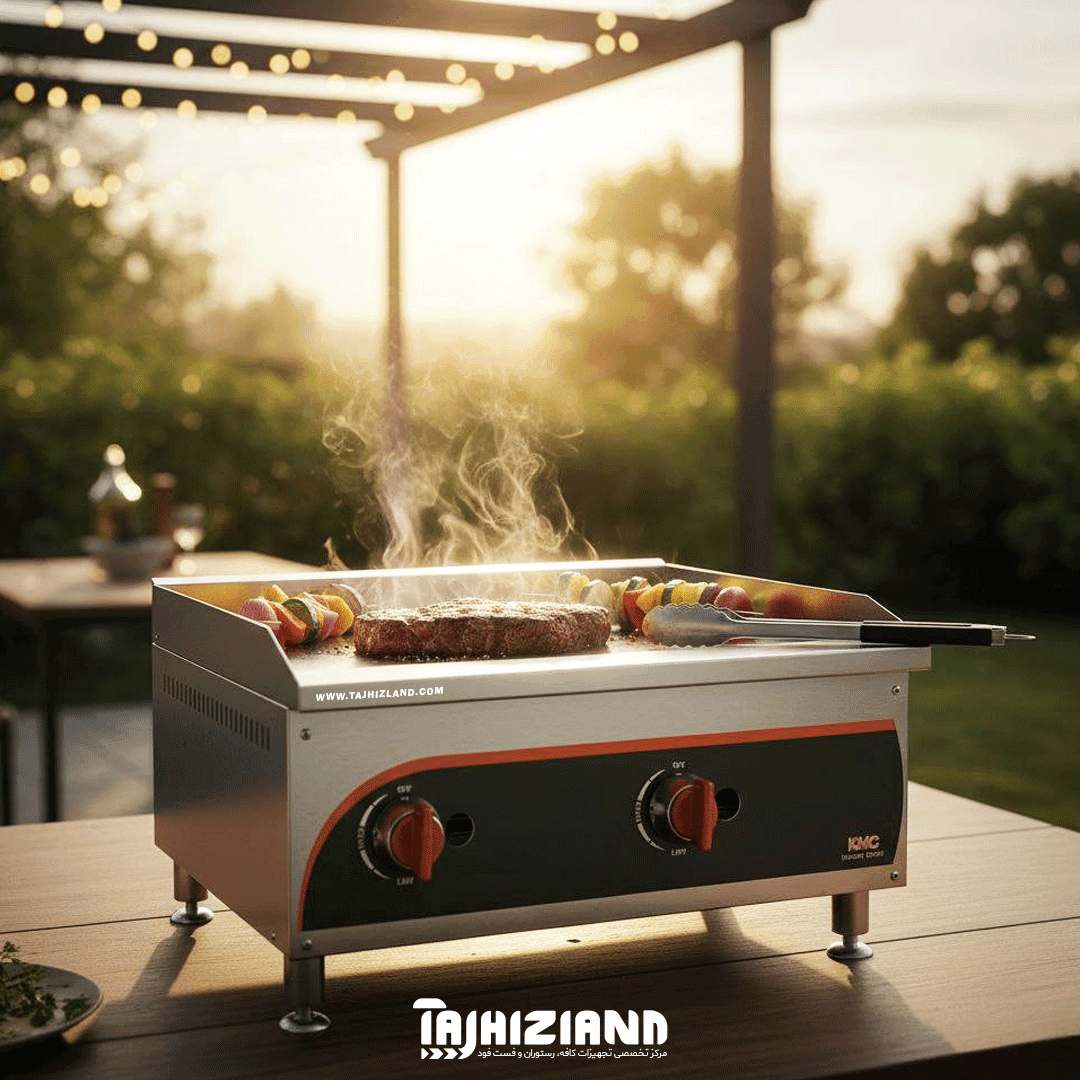 گریل روغنی مخصوص کباب کردن همبرگر زغالی مرغ استیک در فست فود و رستوران های ایتالیایی و گريل زغالي رومیزی مناسب ترین گزینه برای کبابی کردن استیک همبرگر و مرغ به صورت حرارت غیر مستقیم از طریق زغال ، بدون استفاده از روغن بوده و دارای گریل کبابی جهت طبخ برگر زغالی به همراه خط های مشکی رنگی که روی آن می اندازد کاربرد دارد.
