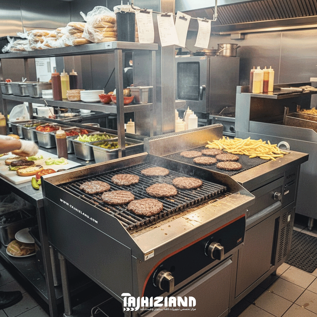 گریل روغنی مخصوص کباب کردن همبرگر زغالی مرغ استیک در فست فود و رستوران های ایتالیایی و گريل زغالي رومیزی مناسب ترین گزینه برای کبابی کردن استیک همبرگر و مرغ به صورت حرارت غیر مستقیم از طریق زغال ، بدون استفاده از روغن بوده و دارای گریل کبابی جهت طبخ برگر زغالی به همراه خط های مشکی رنگی که روی آن می اندازد کاربرد دارد.