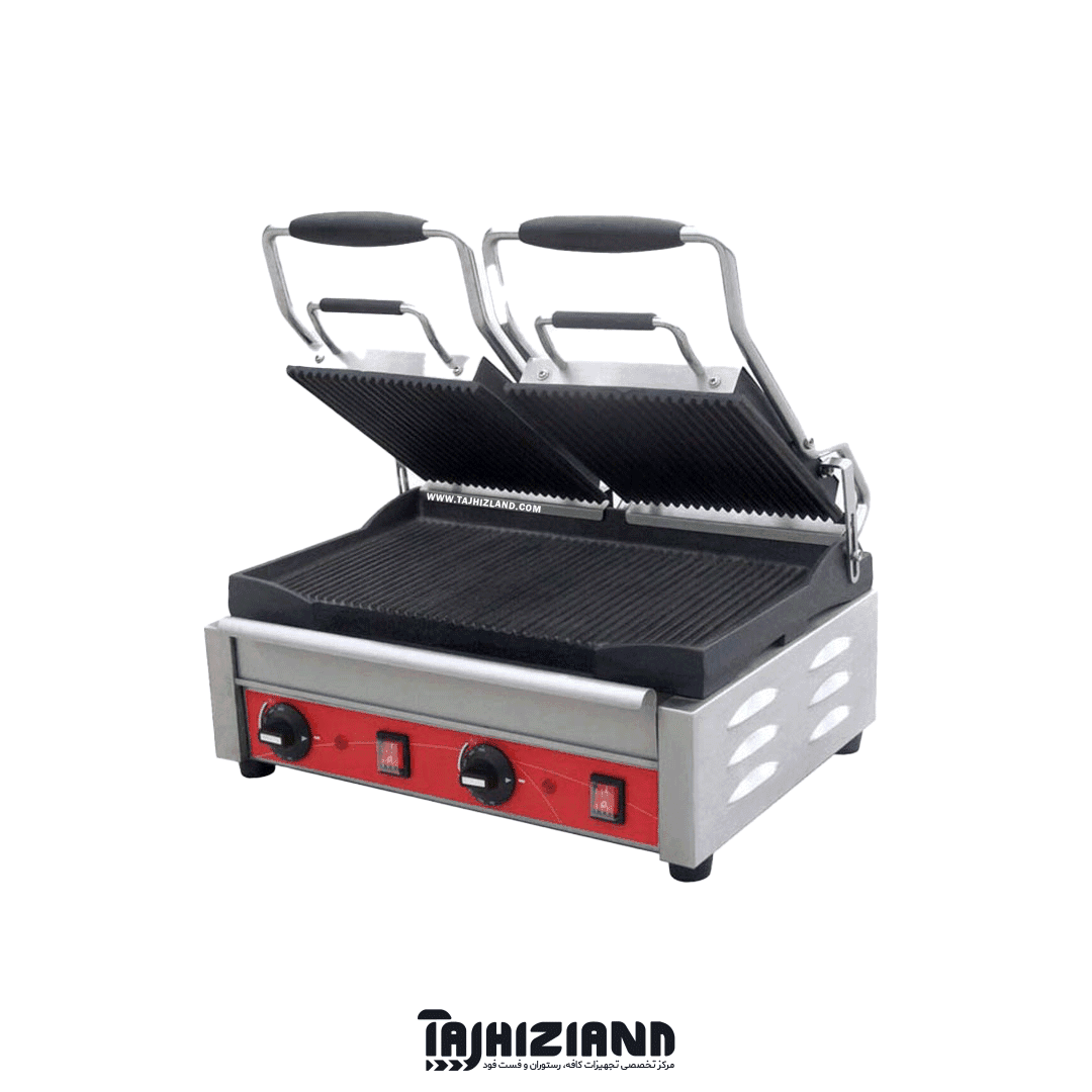 دستگاه ساندویچ ساز دو صفحه برقی قابل استفاده در رستوران ها و کافه ها می باشد و دارای صفحه پخت چدنی به همراه بدنه استنلس استیل بوده که باعث کارآمد و قابل اعتماد شدن دستگاه می شود ، المنت فلزی تعبیه شده در پائین دستگاه و همچنین صفحات پخت چدن موجود در دستگاه باعث سریع تر گرم شدن و حفظ گرما و همچنین توزیع موثر گرما جهت کارآئی هرچه بهتر دستگاه می شود.