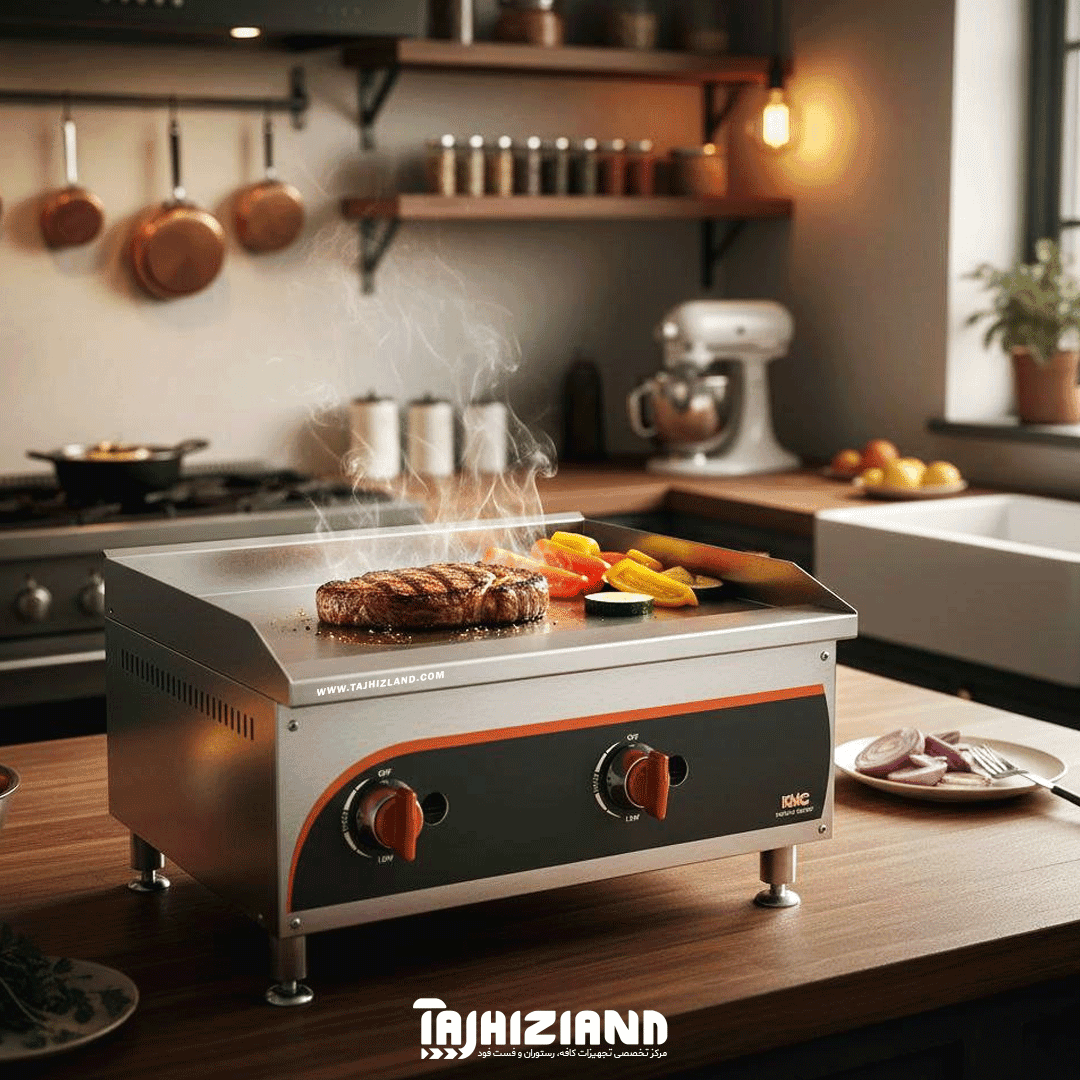 گریل روغنی مخصوص کباب کردن همبرگر زغالی مرغ استیک در فست فود و رستوران های ایتالیایی و گريل زغالي رومیزی مناسب ترین گزینه برای کبابی کردن استیک همبرگر و مرغ به صورت حرارت غیر مستقیم از طریق زغال ، بدون استفاده از روغن بوده و دارای گریل کبابی جهت طبخ برگر زغالی به همراه خط های مشکی رنگی که روی آن می اندازد کاربرد دارد.