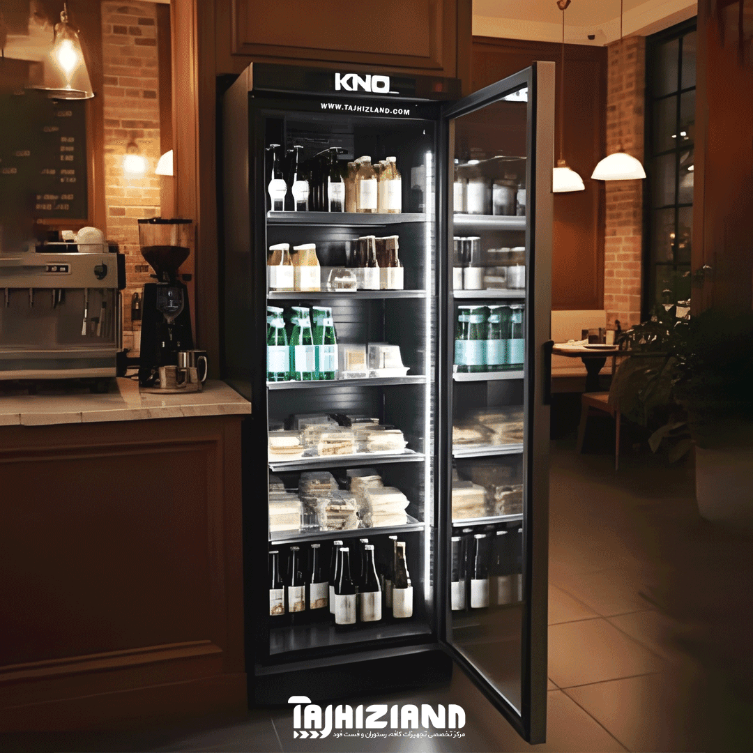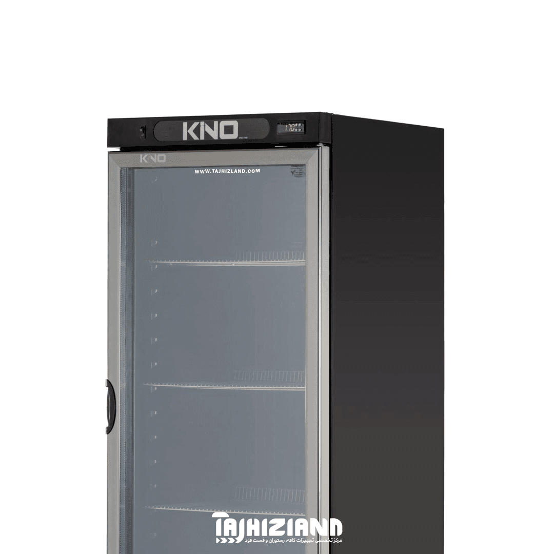 سری یخچال و فریزر های کینو یکی از با کیفیت ترین محصولات این شرکت است که همزمان با حفظ استاندارد های زیست محیطی توانسته است استاندارد های ملی و بین المللی را اخذ نماید. سری محصولات کینو با انجام آزمایش های دقیق اقلیمی در تمام استان های کشور با هر مدل آب وهوائی سازگاری مثال زدنی دارد . از جمله ی آنها میتوان به یخچال فروشگاهی کینو کافی شاپی 60 سانت KINO KR 615 WL-1D اشاره کرد که دارای رده ی مصرف انرژی A است و بخاطر رنگ مشکی آن به اسم کافی شاپی تام گذاری شده است. توان خروجی موتور این یخچال 250 وات است و در بازه ی یک روزه 56/3 کیلو وات برق مصرف میکند که به کمک ترموستات دیجیتالی دمای داخل کابین یخچال بین 0 الی +5 نگه داشته میشود . یکی از ویژگی های خوب این یخچال کنترلر هوشمند با نام SM 6.12 است که با استفاده از سیم کارت و بوسیله ی ارسال پیامک شما میتوانید انواع اطلاعات را در مورد یخچال و یا حتی دمای محصول داخل کابین بر روی گوشی خود به صورت اتوماتیک دریافت کنید . این سیستم اغلب برای مکان هایی مانند داروخانه ها که دمای محصولات داخل یخچال برایشان اهمیت دارد ، طراحی شده است . مدل KINO KR 615 WL-1D با ابعاد خارجی 185*52*62 سانتی متر ( ارتفاع-عرض-طول) وزنی معادل 86 کیلوگرم دارد و با ابعاد داخلی 185*45*51 سانتی متر (ارتفاع-عرض-طول) ، گنجایش 550 عدد قوطی 300 میلی لیتری یا 78 عدد بطری 1500 میلی لیتری را دارد که در 5 طبقه جداگانه با توان تحمل 20 کیلوگرم ، جای میگیرند . درب این یخچال از شیشه ی دو جداره است که حاوی گاز آرگون میباشد تا عایق حرارتی بوده و با سیستم روشنایی طراحی شده در داخل و خارج دستگاه ، محصولات درون یخچال را به زیبایی نمایش دهد .